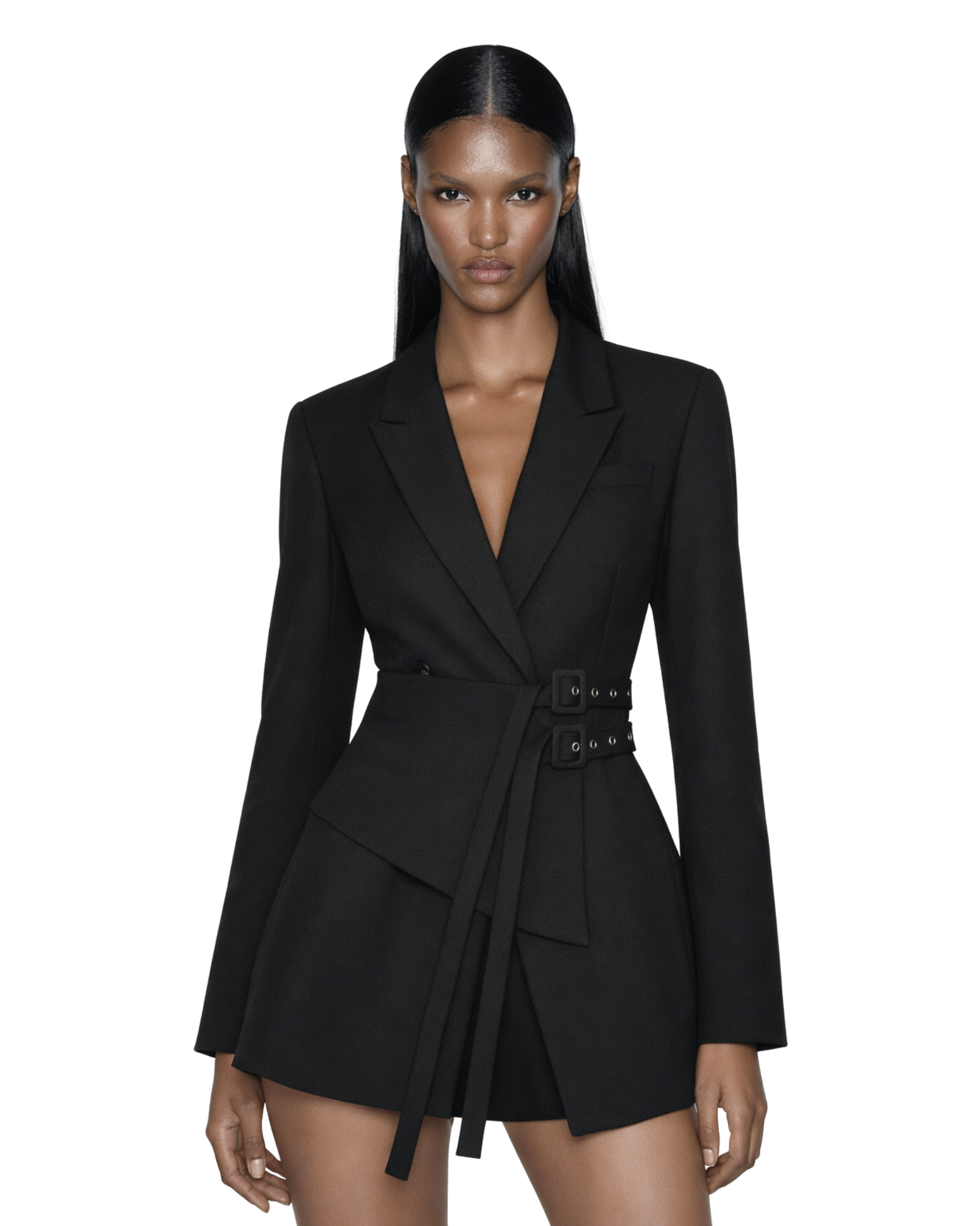 Achieve maximum versatility with this stylish blazer that doubles as a dress, featuring a double-sided belt that adds a touch of elegance to any look.
