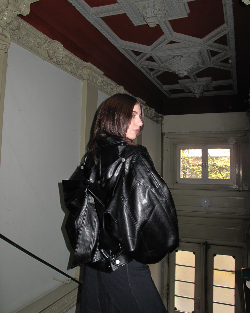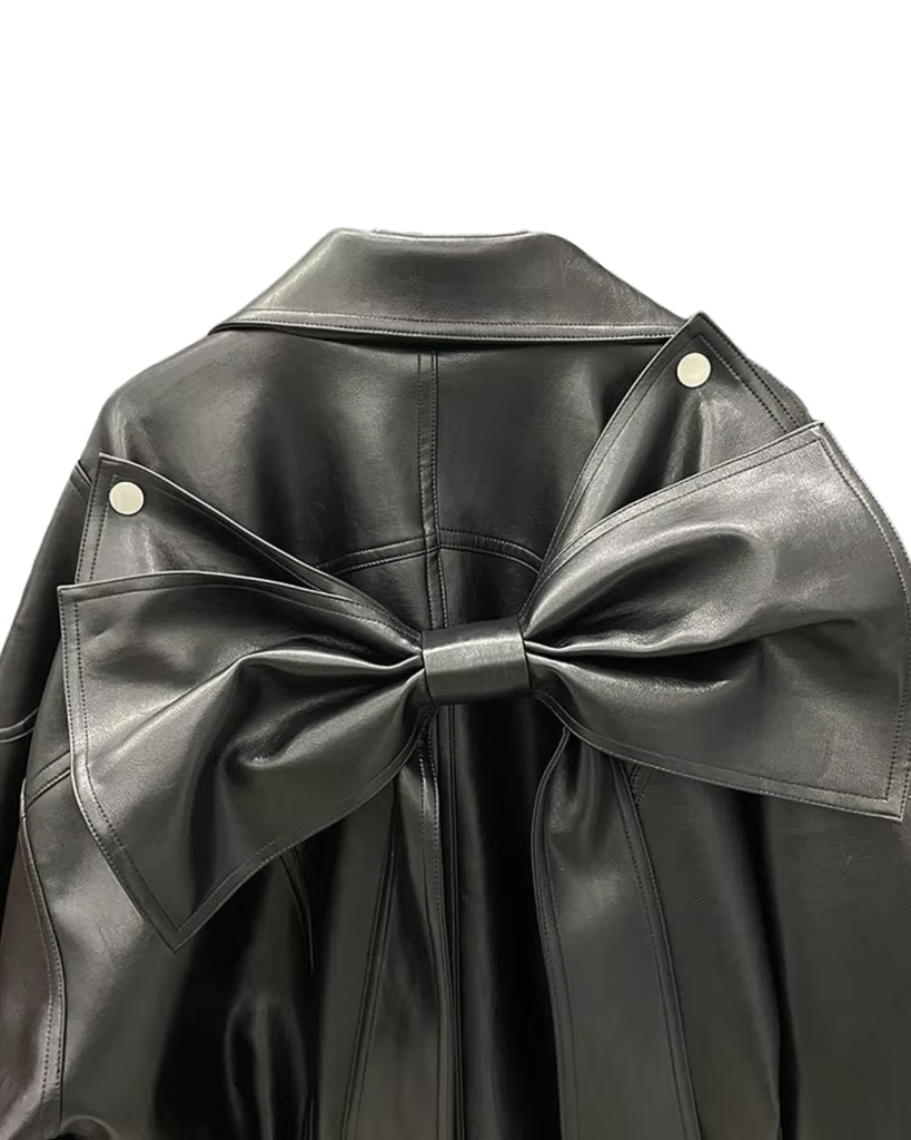 Made from soft vegan leather, it features a detachable oversized bow on the back so you can style it in two ways: bold or minimal.