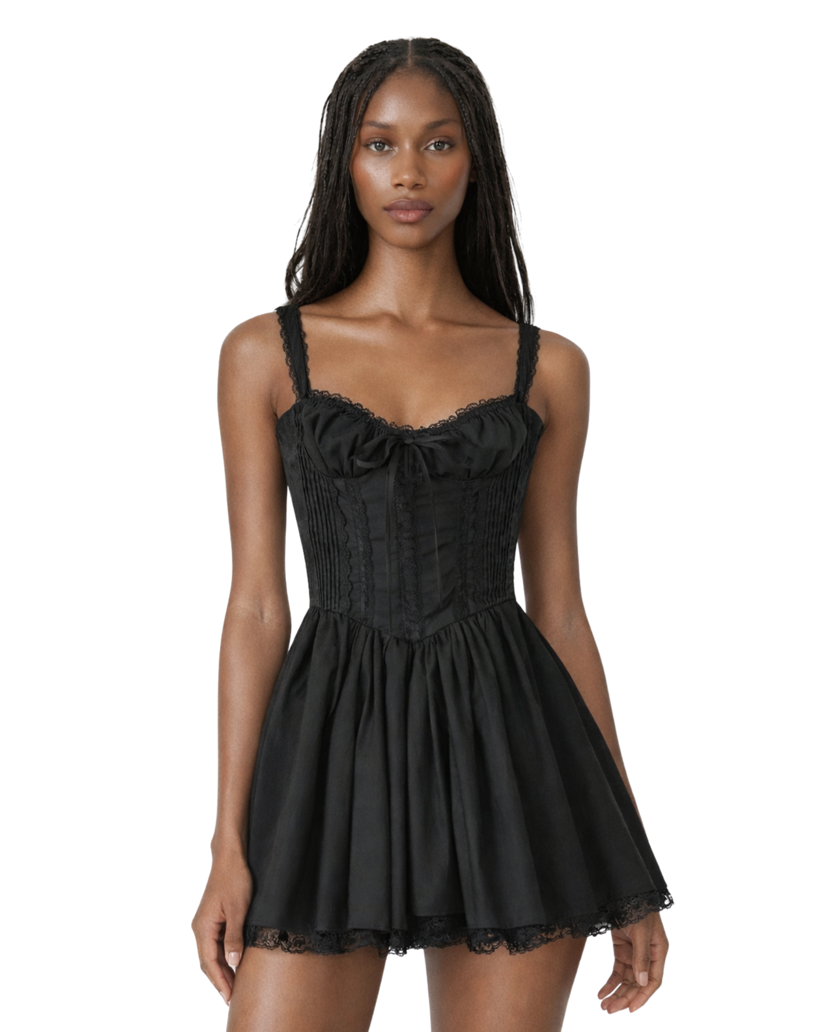 This dress features a stunning corset lace on the back, allowing you to tailor the fit to perfection, sculpting a beautiful silhouette. Delicate lace and ruffled details adorn both the skirt and top, adding a touch of romance to every movement. Comes with a hidden zipper on the back so you don't have to open the lace every time you want to wear it.