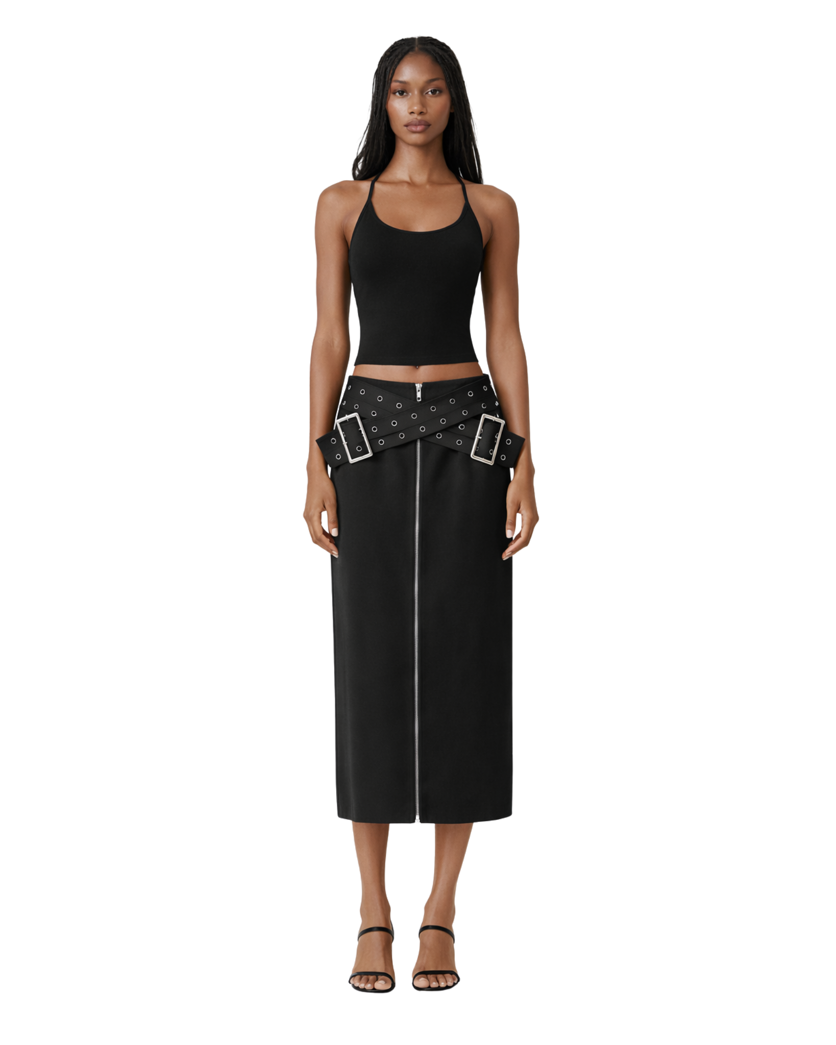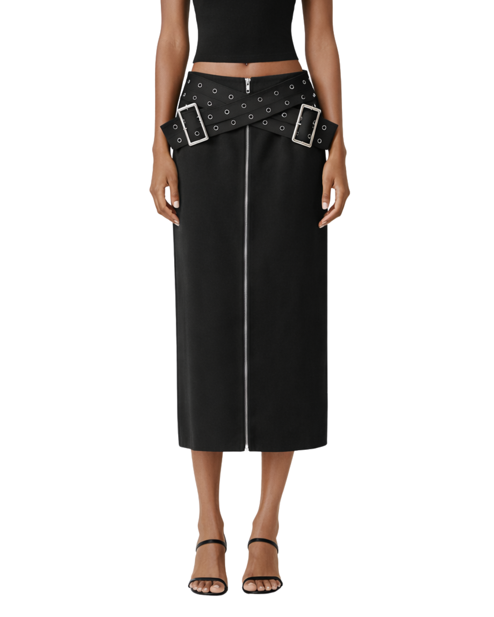 Effortlessly chic and endlessly versatile. The high-waisted design, adorned with a bold Crisscross Belt and a front zipper, brings a touch of modern elegance to your wardrobe. Simple yet striking, this skirt is your go-to for timeless style with a contemporary twist.
